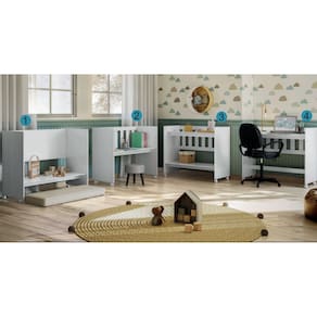 Mais do que um simples berço, o Flex é 5 em 1:-Berço – confortável e seguro para os primeiros meses do bebê.-Mesinha infantil – ideal para brincadeiras e atividades educativas.-Escrivaninha – perfeita para os estudos e momentos de criatividade.-Aparador – uma peça charmosa para organizar o ambiente.-Mesa de computador – funcional e moderna para o dia a dia.