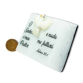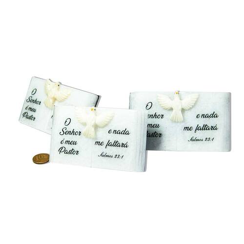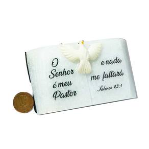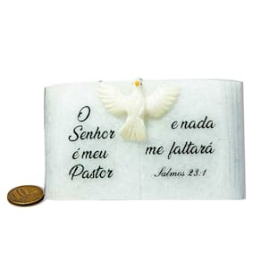 Mini Bíblia de Pedra – Salmo 23:1"O Senhor é o meu pastor; nada me faltará." Uma peça delicada e cheia de significado espiritual. Esta mini Bíblia é esculpida em pedra natural, simbolizando firmeza, fé e proteção. Com o Salmo 23:1 gravado, ela carrega uma das passagens mais reconfortantes das Escrituras, ideal para momentos de oração, meditação ou como amuleto de fé. Perfeita para presentear, decorar altares, espaços espirituais ou carregar consigo no dia a dia como lembrete da presença divina. Tamanho aproximado: 6,4 x 11,0 x 1,5cm Peso aproximado: 240gMaterial: QuartzoUso indicado: Proteção espiritual, decoração, presente simbólico, fé e conexão com o divino. Marca: CristaisdeCurvelo