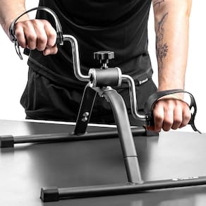 Pode ser utilizada em cima da mesa como um exercitador de braço ou colocada no chão, para exercitar as pernas, enquanto sentado.