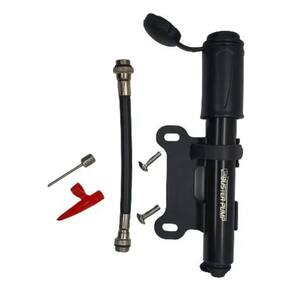 Mini bomba buster manual com bico extensor para pneus de bicicleta. Acompanha: 2 ponteiras para encher bola e bóia. Possui mini mangueira extensora flexível, armazenada dentro do cilindro retirar pela tampa traseira . Capacidade 100psi 7bar .