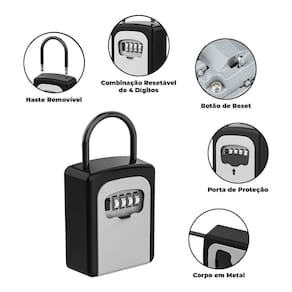 o mini cadeado cofre para chaves é ideal para você que trabalha com aluguel de casas, apartamentos ou imóveis no geral. Com ele, você pode deixar as chaves em segurança e possibilitar o check-in a distância, já que é possível enviar o código do cofre por mensagem para o hóspede. Além disso, o cadeado cofre lock box também é ideal para as famílias que possuem filhos e querem deixar uma chave reserva para que eles possam entrar em casa em eventuais contratempos e sem a necessidade de sempre levar as chaves consigo. O corpo do cadeado cofre para guardar chaves é em aço, proporcionando durabilidade e segurança. Ele pode ser fixado em qualquer estrutura que a parte do cadeado consiga abraçar, como grades, maçanetas de portas ou até de carros. Ele pode também ser fixado na parede, mas não acompanha os parafusos de fixação. A combinação de segurança é de 4 dígitos, e mais de 10. 000 variações de códigos. É importante lembrar que em caso de esquecimento de senha, não há como abri-lo. A alteração de senha só possível quando o cofre já está aberto, através do botão de reset. Para que serve o cadeado cofre