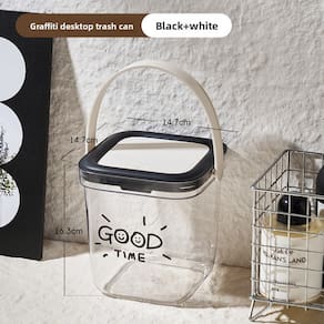 Material: plástico Dimensões: 14,7* 14,7* 16,3 cm Peso: 289 g Design divertido e funcional: apresenta uma divertida impressão “Good Time” com uma tampa e alça convenientes para facilitar o descarte de resíduos. Grande capacidade: com dimensões de 14,7 x 14,7 x 16,3 cm, esta lixeira oferece amplo espaço para uso diário no escritório ou no lixo doméstico. Construção em plástico durável: feita de plástico resistente e fácil de limpar, garantindo um uso duradouro. Compacto e prático: ideal para espaços pequenos, como mesas, quartos, banheiros ou escritórios, mantendo os resíduos bem contidos. Uso versátil: perfeito para descartar papel, embalagens e outros pequenos resíduos em ambientes domésticos, de escritório ou dormitórios.