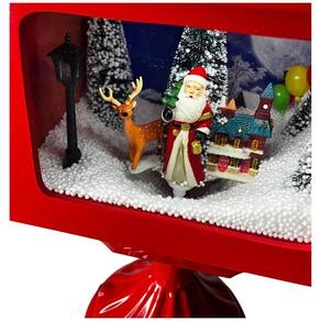 Este enfeite é uma caixa de correio temática do Polo Norte, confeccionada em madeira MDF vermelha, que impressiona pelo seu tamanho e acabamento. Com pintura detalhada e, ao ser ativada, surpreende com músicas natalinas e o movimento simulado de neve, trazendo magia para qualquer espaço.