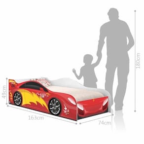 Mini Cama Carrinho Flash Vermelho Com Colchão Cama Infantil Carro Velocista Vermelho com Colchão A Cama Infantil Carro Velocista com Colchão foi feita para todas as crianças, de todas as idades! Com design moderno e diido, proporciona diversão, bem-estar e segurança na hora de dormir, Produzida em MDF, garante melhor acabamento e durabilidade do produto, além de bordas arredondadas evitando riscos de acidente. Ideal para acomodar colchão infantil de 70x150 cm. (Colchão incluso). Dimensões do produto: Altura: 49 cm Largura: 74 cm Comprimento: 163 cm Informações do produto: Tipo de Cama: Mini Cama Acompanha colchão: Sim, com selo INMETRO. Tipo de colchão: Infantil 70x150 cm. Cor principal: Branco Cama adesivada: Sim Itens Inclusos: - 01 Cama Infantil Carro; - 01 Colchão Infantil (70x150 cm) com selo INMETRO. - Kit completo para montagem, manual de instruções. Garantia: 3 Meses contra defeito de fabricação Informações complementares: - Fotos meramente ilustrativas do produto no ambiente. - Verificar descrição e tamanho do produto antes da compra. - Avaliar a mercadoria no ato do recebimento e recusar em caso de divergência ou . - Mantenha as informações de contato e endereço de atualizados para entrarmos em contato caso necessário. * Sugerimos a contratação de um montador para a montagem do produto. Não nos responsabilizamos por causadas no ato da montagem. * Não nos responsabilizamos pela montagem e desmontagem do produto no ato da e , assim como os custos gerados nestas situações. * A transportadora rá o produto no andar térreo do endereço de . * Não nos responsabilizamos por subir escadas, corredores e elevadores ou transporte por guincho em apartamentos. * Não expor o produto diretamente à luz solar e à umidade * Limpar com flanela ou pano macio seco, não utilizar produtos abrasivos, desengordurantes, álcool ou solvente.