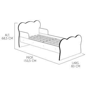 A Cama Infantil com proteção lateral é ideal para garantir conforto e segurança no quarto dos pequenos. Pensada especialmente para a fase de transição do berço, ela oferece um espaço acolhedor para o sono, com um design encantador que combina com diferentes estilos de decoração infantil. Sua estrutura é fabricada em MDP de alta qualidade, com acabamento resistente e cantos arredondados. A proteção lateral proporciona mais tranquilidade para os pais e segurança para a criança durante a noite. Compacta, funcional e charmosa, é a escolha certa para transformar o ambiente com praticidade e estilo. CARACTERÍSTICAS TÉCNICAS: - Estrutura em MDP de 15 mm - Acabamento Brilho na cor Branco - Estrado em Madeira Pinus de 10 mm - Ideal para Colchão Juvenil Larg.70xProf.150 cm - Suporta até 45 kg *Cama NÃO Acompanha Colchão INFORMAÇÕES TÉCNICAS: Altura: 68,5 cm Largura: 83 cm Profundidade: 153 cm Peso: 18,5 kg INFORMAÇÕES ADICIONAIS: -ATENÇÃO: Não trabalhamos e não nos responsabilizamos pela montagem do móvel. Antes da montagem conferir se o produto está de acordo com o que comprou, produto montado e danificado pela montagem não será aceito troca. -As imagens ambientadas são meramente ilustrativas e podem apresentar itens que não compõe o produto. As cores do produto podem variar de acordo com o monitor, a iluminação do ambiente ou sua percepção visual. -Limpeza: Deve ser feita com pano macio e seco ou levemente umedecido com água e sabão neutro. Não devem ser utilizados abrasivos como palha de aço e objetos cortantes. Garantia para defeitos de fabricação conforme Código de Defesa do Consumidor.