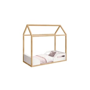 Seu design de casinha em madeira adiciona um toque de fantasia e aventura ao ambiente, transformando o quarto em um lugar onde a imaginação pode florescer. Além do estilo, a mini cama prioriza a segurança da criança. Com sua altura baixa ao chão, a criança pode entrar e sair da cama facilmente, promovendo independência e autonomia.