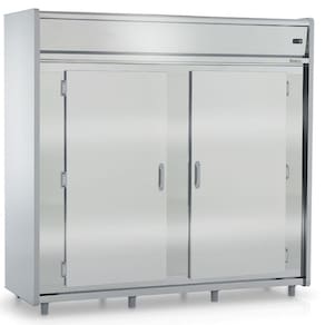 Mini Câmara Refrigerada 2 Portas com Prateleira GMCR2600AIPS Gelopar. Conservação e Exposição de carnes (não congeladas). Ideal para supermercados, açougues, mercearias e similares. Temperatura: 0 a +7C. Refrigeração: Ar forçado com evaporador aletado. Controlador eletrônico com indicador de temperatura. Degelo: Automático. Revestimento Externo: aço inox 430. Revestimento Interno: aço galvanizado. Ganchos para tendal. Pés niveladores. Alta capacidade de armazenamento. Estrado em PVC. Acompanha prateleira + suporte. CAPACIDADE: 2544L. TEMPERATURA: 0 a +°7C. CONSUMO: 11,54 kWh/dia. PESO: 291kg. DIMENSÕES EXTERNAS (FxAxP): 219,1x222,5x79,3cm. Equipamento certificado conforme Portaria Inmetro nº 371/2009. Mini Câmara Refrigerada 2 Portas com Prateleira GMCR2600AIPS Gelopar é na Atau.