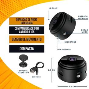 Características Design compacto e discreto Imagens em alta definição 1080p Conexão wi-fi para monitoramento remoto em tempo real Visão noturna para ambientes com pouca luz Base magnética para instalação prática Detecção de movimento com alerta no celular Compatível com ios e android Suporte para cartão micro sd até 128gb não incluso Funciona com ou sem wi-fi modo gravação local Ideal para uso residencial, comercial ou automotivo