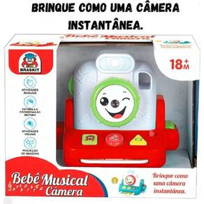 Com o Bebê Musical Câmera da Braskit, seu pequeno fotógrafo pode "tirar" lindas fotos, prepare-se para fazer pose! Diga X e aproveite esta linda brincadeira imaginativa. Esta incrível câmera de faz de conta possui luz de "flash", botões, anel de focagem giratório, projeção de diversas imagens e cartão de imagem lenticular. Com luz, música e sons realistas de câmera a diversão está garantidaBrinque Como Uma Câmera Instantânea.Gire Para Mudar As Imagens Projetadas.Pressione Os Botões Para Emitir Sons de Animais e Musicais e Som de Câmera Fotográfica.Aperte o Botão Na Lateral Para Sair a Foto Lenticular.CARACTERÍSTICAS TÉCNICAS:Conteúdo da Embalagem: 1 Câmera Musical Para Bebes.Dimensões Aproximadas do Produto: 13cm x 14cm x 10,5cm (Altura x Largura x Comprimento/Profundidade)Dimensões Aproximadas da Embalagem: 16,5cm x 11,5cm x 21,1cm (Altura x Largura x Comprimento/Profundidade)Material/Composição: PlásticoIdade Mínima Recomendada: A partir de 18 Meses.Participantes: A partir de 1 pessoa.Alimentação: 3 Pilhas 1.5V AAA.Marca: Braskit.Referência: 6308