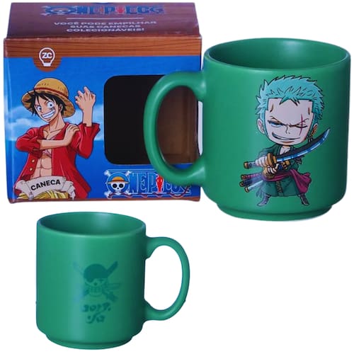 Mini Caneca Roronoa Zoro Café Expresso Empilhável Cerâmica 100ML Oficial One Piece!