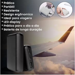 Com a Power Bank de 10000 mAh é possível levar uma bateria extra para todos os lugares e nunca correr o risco de ficar sem carga em seu aparelho. O carregador é pequeno e portátil, o que facilita ainda mais o seu transporte.