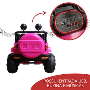 Mini Carro Jeep Elétrico Infantil Importway Rosa 12V Luzes Som Com Controle
