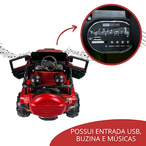 Mini Carro Jeep Elétrico Infantil Vermelho12V Luzes Som Com Controle