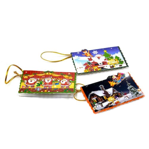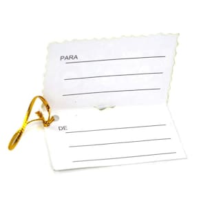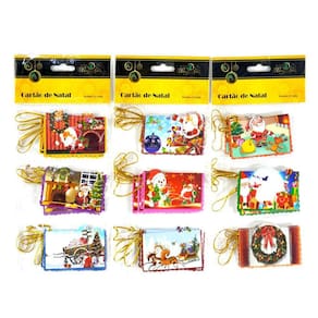 Características gerais: Cartão de Natal De/Para 12 Peças 4,5x6,5 Sortidos - Adquira belas decorações de natal para enfeitar sua casa ou estabeleciento na melhor época do ano; - Lindos enfeites para embelezar o mês de dezembro, receber a família e complementar o ambiente natalino; - Cartão de natal De/Para, ideal para prender junto ao presente ou lembrancinhas natalinas e escrever o rementente e destinatário; - Com desenhos sortidos e um cordão dourado para prender
