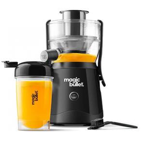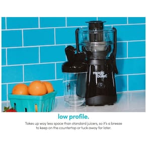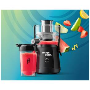 Mini Centrifuga de Frutas Magic Bullet 400W com jarra de 470ml, rampa de alimentação espaçosa, copo com tampa giratória, acessórios laváveis e design compacto.Nº de velocidades