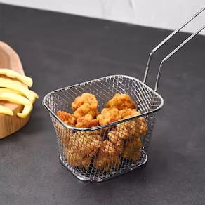 Mini Cesto para Frituras – Sirva com Estilo e PraticidadePerfeito para lanchonetes, restaurantes ou para uso doméstico, o Mini Cesto para Frituras oferece uma apresentação sofisticada e moderna para porções de batatas fritas, frango empanado, salgadinhos e outros petiscos. Fabricado em aço inox de alta qualidade, é resistente, durável e fácil de manusear, proporcionando charme e praticidade ao servir.Principais Características:- Design Elegante e Funcional – Ideal para apresentação diferenciada de petiscos e porções.- Estrutura Aramada – Permite escorrer o óleo de maneira rápida e eficiente.- Material de Alta Qualidade – Feito em aço inoxidável, resistente à corrosão e fácil de limpar.- Leve e Ergonômico – Possui alça metálica para um manuseio seguro e confortável.Especificações Técnicas:Material: Aço InoxDimensões totais: 12 A x 18 L x 8,5 C cmDimensões Cesto: 6 A x 10 L x 8,5 C cmCor: MetálicoPeso Suportado: Aproximadamente 100 a 150 g de batatas fritas ou outros alimentosUso: Indicado para servir porções, não deve ser levado ao fogoDestaque seus pratos com um toque profissional e sofisticado. Ideal para surpreender seus convidados ou clientes!