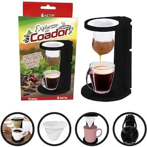 Expresso no coador. Seu cafezinho fresquinho pronto em segundos! Super prático e fácil de montar, moderno e compacto. Dobrável e fácil de guardar. Cafezinho delicioso a qualquer hora!