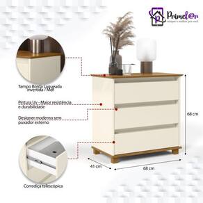 A Mini Cômoda EJ é um móvel versátil e funcional, possui acabamento UV e alto relevo, 03 gavetas sem puxadores externos para armazenar seus objetos, pés em madeira maciça e corrediças telescópicas. Um móvel produzido com material de qualidade, com design inovador e estrutura robusta para quem busca elegância e funcionalidade em um único produto.
