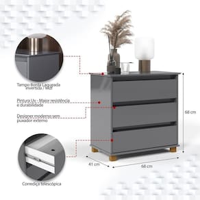 Características da Mini Cômoda para Quarto 3 Gavetas Prisma: