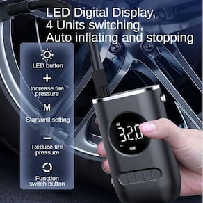 Função de enchimento: com pressão de ar máxima de 150 psi, o compressor de ar sem fio pode fornecer um potente ar de inflar para o pneu ou bola vazia; rápido, prático e conveniente.
