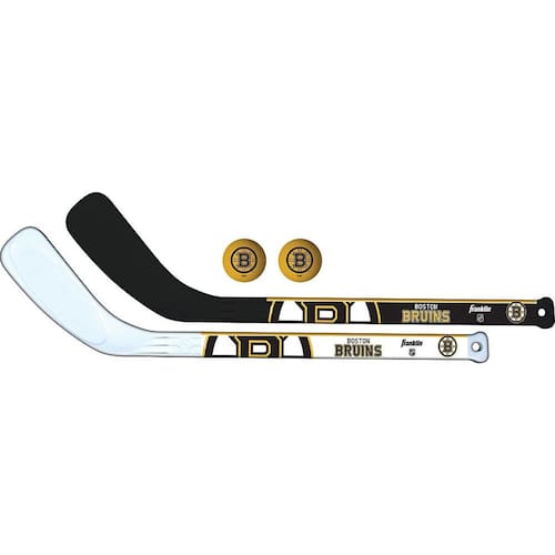 Franklin Sports Conjunto de mini taco de hóquei NHL Boston Bruins – Conjunto de bola e taco de hóquei da equipe NHL – Conjunto de dois jogadores – Ótimo brinquedo para crianças - Conjunto de mini bastões de hóquei BOSTON BRUINS: Estes mini tacos de hóquei oficiais da NHL são a maneira perfeita para as crianças começarem a aprender e jogar o jogo de hóquei enquanto mostram seu orgulho por suas equipes favoritas da NHL - (2) mini bolas de hóquei de espuma EVA macia de 5 cm - Construa confiança: o conjunto de bola e bastão de hóquei super macio no joelho é ótimo para aprender a coordenação óculo-manual, com a tecnologia Soft Sport da Franklin para crianças - Bolas de espuma macias: as (2) bolas de hóquei de espuma EVA macia são perfeitas para jogadores mais jovens jogarem com segurança e facilitar o transporte do jogo para dentro de casa - O conjunto inclui: este conjunto vem com (2) mini tacos de hóquei, (1) destro e (1) canhoto e (2) bolas de espuma EVA de 5 cm para que você possa ter vários jogadores juntar-se ao jogo - Oficial da NHL: conjuntos oficiais da equipe NHL com logotipos e cores autênticos para mostrar o orgulho do seu time ou ajudar seus filhos a brincar e se sentirem como seus profissionais favoritos - Inclui (2) mini bastões de hóquei de plástico durável de alto impacto - Lâminas texturizadas Shot Zone pré-curvadas - 1 bastão é um tiro à esquerda e 1 é um tiro direito - 4-5 anos