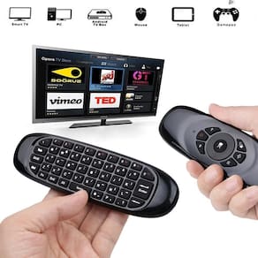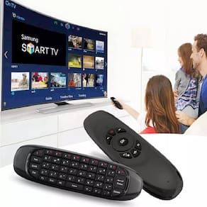 Mini Controle Com Teclado Air Mouse Para Smart Tv Ou Pc Cor: Preto DESCRIÇÃO Controle remoto sem fio com teclado, com controle de volume, botão de atalho para acessar menu, setas direcionais e botão ok para selecionar as funções. Air Mouse é um controle remoto sem fio com teclado QWERTY que facilita a navegação em sites da sua SmartTV ou , navegue entre os menus com o mouse e utilize o teclado para fazer pesquisas mais rápido, esse produto é compatível com quase todos os sistemas atuais, navegue com facilidade sem precisar levantar do sofá, também é possível utilizar no computador. CARACTERÍSTICAS: Comunicação: 2.4 Ghz sem Fio Modelo de escrita: QWERTY Freqência: 2.00-2.483 Ghz Distância: 10m Compatível Com: Windows, , OS, Linux e Android. Dispositivos: PC, Smart Tv, Rede media Player,Tablet Gamer Player, ETC. Bateria de li-ion recarregável Interna não removível . Sistema Plug and Play Não precisa instalar, basta conectar e usar . Air Mouse com Tecnologia Anti-Vibração Teclado Android com Bateria de Íons de Li-ion Recarregável 7 Cores em LED Opcionais Peso: 65g Cor: Preto. Conteúdo da caixa: 1x controle Air mouse 1x cabo de carregamento 1x sem fio 1x Manual em Português Homologação Anatel: 005981306569 Marca: Não Informado Ean: 7891755719995