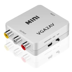 Converta o sinal VGA para AV RCA com esse compacto e elegante conversor com áudio. Com tecnologia Plug and Play, basta você conectar a sua saída VGA a uma entrada áudio e vídeo RCA e o cabo USB de alimentação.