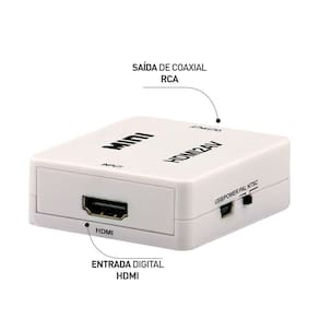 Mini Conversor Hdmi Para Vídeo Composto rca Ligue seu video game, notebook, dvd, sistema de câmeras, ou quaquer outro dispositivo que possua saída HDMI diretamente em televisores ou monitores que ainda utilizam a entrada AV Composite RCA com facilidade utilizando esse Mini Conversor HDMI para Vídeo Composto RCA . Tenha imagens nítidas e com qualidade de áudio. Imagens Full HD de 1080p. Basta ligar o cabo HDMI na porta de entrada do conversor, e, em seguida, ligue um cabo de Áudio e Vídeo Composto padrão RCA-amarelo, vermelho e branco do conversor para a TV. É necessário ligar o cabo USB já incluso para fornecimento de energia.