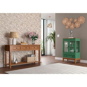 A Mini Cristaleira de Madeira Maciça Verde La Decora conta com 2 portas,1 gavetas e prateleiras que vão ajudar na organização do seu lar, trazendo ainda mais charme para o ambiente. Uma peça com estilo rústico atemporal, que pode ser utilizada em qualquer estilo de decoração, agregando mais aconchego ao lar.