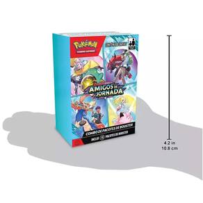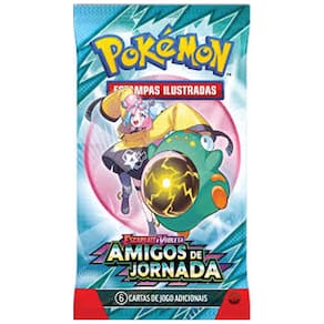 Pokémon de Treinadores vão com tudo para a batalha!Com profunda confiança e constante orientação, os Treinadores ajudam a trazer à tona o melhor de seus Pokémon. O vínculo que eles compartilham os empoderam para agirem como um só em batalha, elevando suas forças ao limite, inclusive como Pokémon ex! Monte sua equipe com Zoroark ex do N, Bellibolt ex da Kissera, Clefairy ex da Lílian, Zacian ex do Lupo e mais Pokémon de Treinadores, e descubra o implacável poder da amizade na expansão Escarlate e Violeta - Amigos de Jornada do Pokémon Estampas Ilustradas! A expansão Escarlate e Violeta - Amigos de Jornada do Pokémon Estampas Ilustradas contém mais de 180 Cartas. Cada pacote de booster do Pokémon Estampas Ilustradas contém 6 cartas.Cada jogador deve ter um baralho com 60 cartas de Pokémon para jogar.Mini Display de pacotes de booster de Escarlate e Violeta - Amigos de Jornada do Pokémon Estampas Ilustradas. Contém 18 (dezoito) pacotes de booster Escarlate e Violeta - Amigos de Jornadas do Pokémon Estampas Ilustradas totalizando 108 cartas. Jogue Online! Você pode resgatar cartas codificadas no Pokémon Estampas Ilustradas Live para receber recompensas digitais.