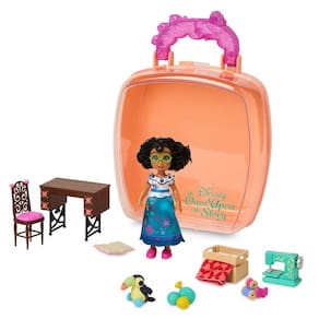 Disney A coleção Once Upon a Story celebra o poder da imaginação e da narração de histórias com personagens amados. Nossa boneca Mirabel articulada de 12 cm a revisita como uma menina com uma grande imaginação que adorava sonhar acordado com seus presentes especiais na encantada Casa Madrigal! Completo com um boneco Pico, máquina de costura com mesa, cadeira e acessórios, a Mirabel vem em um estojo de transporte resistente com janela transparente com uma alça brilhante e fecho de pressão. Inspirado no Encanto da Disney (2021), este conjunto inclui uma mini boneca Mirabel articulada com cabelo enraizado, uma roupa de estampa de cetim com óculos e sapatos moldados, figura do Pico, máquina de costura com mesa, cadeira, caixa de tecido, livro, novelos de fio e carretéis de linha. O estojo de transporte pode ser utilizado para armazenar todos os itens, o que o torna perfeito para brincar em movimento. Parte da coleção Once Upon Disney Story da Disney, este conjunto estimula brincadeiras imaginativas e é ideal para meninas que amam bonecas princesas, o que o torna um presente perfeito para aniversários e ocasiões especiais.