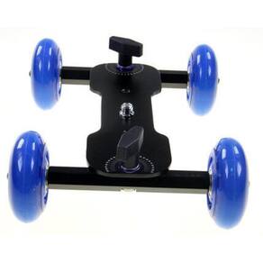 O Mini Dolly Skate para Câmeras e Filmadoras para até 8Kg, Cabeça de Tripé vendida separadamente permite que você efetue movimentos em linha reta ou curva. Ambos os eixos podem ser ajustados manualmente para que você tenha novos ângulos e mobilidade durante suas gravações ou fotografia. A rodas possuem revestimento em borracha, permitindo assim, um movimento suave e silencioso, utilizando-o mesmo em superfícies irregulares.Este Mini Dolly possui um sistema de orientação que, a partir das informações já contidas na orientação do dolly, você possa definir ângulos e eixos que o carrinho irá percorrer. O Dolly Skate possui encaixe para Cabeças Head com rosca padrão de 3/8 e 1/4, garantindo mais opções e descobertas com a sua Câmera DSLR. características: estilo Rodas Skate construção em alumínio rosca Central de 3/8 e 1/4 suporta Equipamentos de até 8kg Ideal para vistas panorâmicas de 360º rolamentos de de alta qualidade Adequado para Câmeras DSLR ou Filmadoras cabeça para Tripé não inclusa, vendida separadamente. Marca: Não Informado