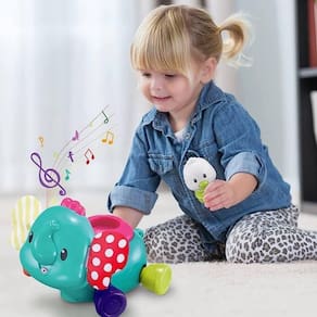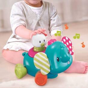 Mini elefante azul carrinho de bebe infantil brinquedo para engatinhar ativa movimento com palmas elefante bebe