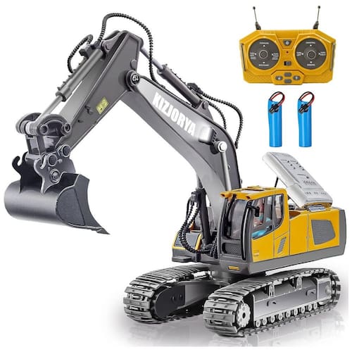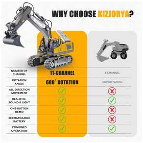 NOVA AVENTURA DE SIMULAÇÃO! Com o objetivo de proporcionar às crianças uma experiência operacional simulada, esta escavadeira rc recria em escala 1:20 o deck de controle, pá de metal, braço de escavadeira, roda rastreada, som realista e luzes piscantes. Vamos imitar o operador de escavadeira e operar esse grande caminhão agora mesmo! PODEROSO E FLEXÍVEL! Com 11 canais integrados, 2,4 GHz e um controle remoto infravermelho sem fio, você pode controlar facilmente este brinquedo de escavadeira para ir em qualquer direção. Avançar, virar à esquerda, cavar, girar e descarregar, há mais combinações de operações esperando para serem exploradas! BRINQUEDOS STEM PARA CRIANÇAS! Esta escavadeira controlada remotamente não é apenas um brinquedo, mas também uma máquina para a formação STEM (Ciência, Tecnologia, Engenharia e Matemática) das crianças. Ao operar o brinquedo da escavadeira, elas podem ter uma melhor compreensão da construção e aprender física de alavancas e pressão. Presente perfeito para crianças de 8 a 12 anos. DUAS BATERIAS COM DIVERSÃO SEM FIM! Equipado com duas baterias recarregáveis de Li-ion de 1200mAh para reposição, este brinquedo de escavadeira suporta mais diversão sem interrupções. Além disso, nossa bateria passou no teste MSDS, sendo segura o suficiente para as crianças aproveitarem o tempo de engenharia. Nota: A bateria pode estar fraca na chegada, por favor, carregue-a primeiro. PRESENTE PERFEITO PARA MENINOS E MENINAS! As crianças aprendem a operar o brinquedo de construção, pensando e aprendendo enquanto brincam. Ao mesmo tempo, elas desfrutam de horas de diversão, tanto dentro de casa quanto ao ar livre, afastando-se das telas e da internet. Presente perfeito para aniversário, Dia das Crianças e Natal. Embrulho para presente disponível. Não perca esta grande surpresa para seus filhos!