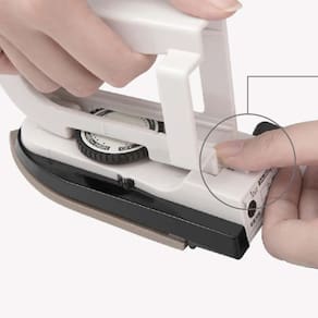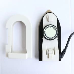 O mini ferro possui a alça removível, que também serve como suporte para o seu ferro de passar compacto, facilitando o armazenamento.