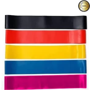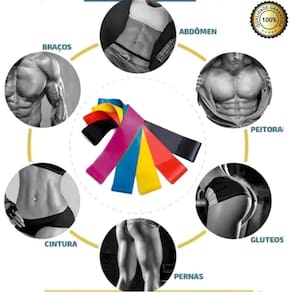 Mini fita elástica com 5 elástico para treino de pernas O kit mini band, possui 5 níveis de intensidades: leve, médio, forte, super forte e extra forte, são elásticos circulares. São elásticos que podem ser utilizados para exercícios de fortalecimento, reabilitação, prevenção de lesões, aumenta, resistência e força, Ótimo para treinos de gap, funcionais, pilates, yoga e no suporte para a prática de esportes como futebol, atletismo, vôlei, basquete, tênis, lutas e afins.
