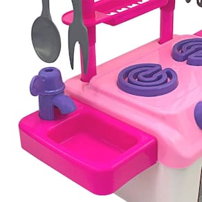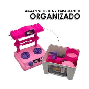 Especificações: - Material: Polipropileno e Adesivo - Medida Mini Fogão: 31cm x 35cm x 18cm / 330 gramas - Medida Panela: 12cm x 08cm cada / 25 gramas cada - Medida Prato: 11cm x 01cm / 06 gramas cada - Medida Talher Maior: 12cm comprimento / 05 gramas cada - Medida Talher Menor: 08cm comprimento / 04 gramas cada - Com Baú: Sim - Cor: Colorido Variado - Registro Inmetro: 001278/2020
