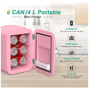 Portátil e Compacto: Com uma capacidade de 4 litros, o refrigerador pode acomodar até seis latas de 355 ml. Suas dimensões internas são 13,5 cm de profundidade x 15,4 cm de largura x 20,2 cm de altura, e ele possui uma alça de transporte conveniente e uma prateleira destacável, facilitando o transporte. É ideal para uso em quartos, escritórios, dormitórios, viagens, barcos, campings e muito mais.