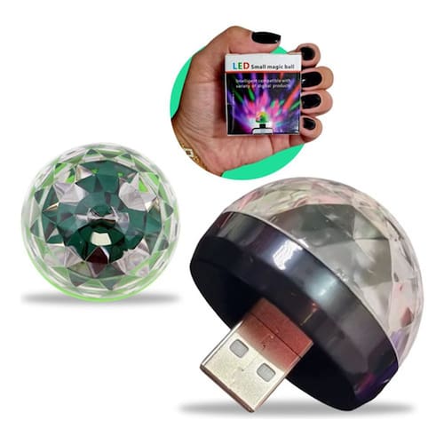 Luz Festa USB Mini Bola Discoteca para Carro e Celular