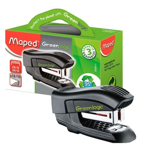 Mini grampeador greenlogic 24-26/6 12/15 folhas maped para evitar que papéis se percam ou se separem, é muito mais prático grampeá-los. Uma linha robusta, sóbria e de alta qualidade. Grampeador de bolso que cabe na sua mão. Características: - fácil carregamento dos grampos; - com extrator de grampos na parte traseira; - com grampo 24/6 grampeia até 12 folhas e com 26/6 até 15 folhas; - produto feito com 95% de plástico reciclável. -imagens meramente ilustrativas- atenção: a cor do produto pode variar de acordo com o monitor atenção: o fabricante pode alterar a cor de alguma parte do produto sem aviso prévio.