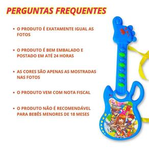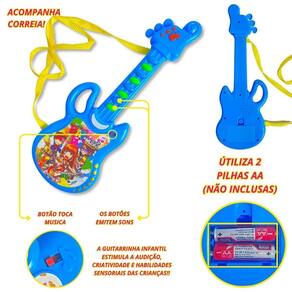 Funções: toca som. A guitarrinha infantil estimula a audição, criatividade e habilidades sensoriais das crianças