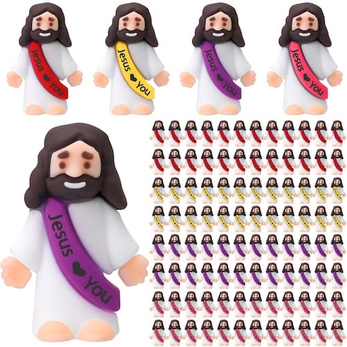 Características: Crie uma atmosfera festiva: Os brinquedos Jesus são adequados para criar uma atmosfera forte, eles não são apenas decoração de festival, mas também lindos adereços de fotos. Tire algumas fotos bonitas e deixe memórias inesquecíveis. Bons presentes: Você pode enviar as bonecas Jesus como presentes para seus familiares, colegas e muitas outras pessoas, elas ficarão felizes e surpresas quando receberem presentes de Páscoa tão requintados, mostrando seu cuidado e promovendo seus relacionamentos. Especificações: Material: borracha Cor: como mostrado na imagem. Tamanho: cerca de 1,2 x 1,4 polegadas/3 x 3,5 cm A embalagem inclui: 100 bonecas Jesus. Observações: Medição manual, considere pequenos erros no tamanho. A cor pode existir uma pequena diferença devido a diferentes telas. - Cores e estilos suficientes: você receberá 100 brinquedos de Jesus, cada tamanho tem cerca de 1,2 x 1,4 polegadas/3 x 3,5 cm, há quantidades suficientes para atender às suas necessidades de uso e substituições, você pode compartilhá-los com outras pessoas - Materiais de borracha confiáveis: a boneca Jesus é feita de materiais de borracha com uma superfície resistente e lisa, que não desbotam, deformam ou quebram facilmente, os bons materiais são confiáveis e seguros, servirão por um longo tempo - Jesus ama você: estes pequenos bonecos de Jesus são impressos com Jesus ama você, eles são uma boa escolha para dar de presente, artigos de festa, recompensas de sala de aula em eventos religiosos; o pacote pode ser compartilhado com seus entes queridos para ajudá-los a sentir o calor e a conexão nessas reuniões religiosas - Presentes de festa religiosa: os requintados brinquedos de pelúcia de Páscoa podem ser amplamente aplicados para atividades religiosas, como caça a ovos de Páscoa na igreja, atividades escolares ao ar livre e assim por diante, trazendo a você uma boa experiência de festival - Ampla aplicação: a estatueta de Jesus é fofa e interessante, usando-a em festas de Páscoa, escritórios, mesas, lareiras e prateleiras, o tamanho adequado é adequado para essas áreas sem sensação repentina, aproveitando o festival de Páscoa com outras pessoas