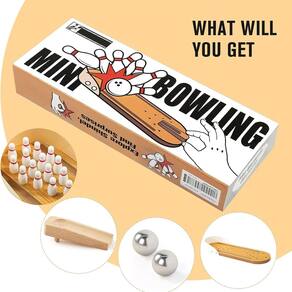 - Pacote de conjunto de boliche - Inclui: 1 x base de madeira, 10 x bolas de boliche, 1 x rampa, 1 x bola de aço inoxidável, tamanho do produto: 29,5 x 9,9 cm