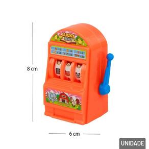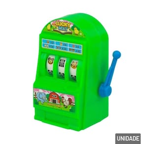 Mini Jogo Infantil Caça Níquel Plástico Co O Mini Jogo Infantil Caça-Níquel é uma divertida simulação de máquina de cassino para crianças. Basta girar a alavanca e torcer para formar combinações.\nFeito em plástico colorido, é leve, resistente e fácil de brincar. Estimula a coordenação e o raciocínio de forma lúdica e segura.\nDisponível em cores diversas.\nEspecificações:\nMarca : ARK BRASIL\nTipo de material : Plástico\nCores ou Estampa : Color\nDimensões do Produto : 8 X 6 X 3,5 CM\nDimensões da Embalagem : 8 X 6 X 3,5 CM\nPeso Bruto (Gramas) : 0.022