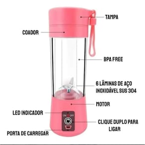 O liquidificador portátil é feito com material resistente, conta com uma bateria recarregável (alimentada através de USB), tampa com trava e proteção para evitar vazamentos, além de botão On/Off. Melhore sua alimentação com este produto que vai tornar sua vida mais prática e saudável!