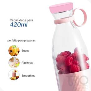 Possui uma capacidade de 420ml, o que é suficiente para preparar uma porção individual, ele é alimentado por uma bateria recarregável, além de ser um dispositivo compacto e prático, ideal para quem está em movimento constante e quer manter um estilo de vida saudável. -----------------------------------------------------------------------------------------------------------------