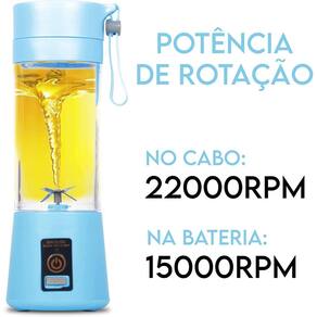 Mini Liquidificador Portátil Recarregável 6 Lâminas Azul Você mistura e bebe na mesma garrafa, o presente ideal para amigos e para você mesmo. Por ser portátil e com design revolucionário permite ser levado para academia, viagens e até mesmo ao escritório.