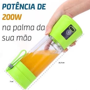 pequeno em tamanho, portátil e multiuso. Pode ser utilizado como um copo comum ou liquidificador de suco. Pode misturar frutas e vegetais. Saudável e amigo do meio ambiente, material não tóxico. Seguro, interruptor duplo de proteção de segurança e proteção de carga e descarga. Velocidade rápida, capaz de fazer um suco em 1 minuto. Pode repetir o uso quando está completamente carregado, e fácil carregar quando a bateria estiver esgotada. Características: capacidade: 380ml motor: dc 3. 6v rotação do motor: vazio 22000rpm / cheio 15000rpm corrente de trabalho: 10 - 12a modelo da bateria: 3. 7v capacidade da bateria: 2000mah modo de carregamento: utilizar um carregador para telefones ou carregador portátil tempo de carga: aproximadamente 3 horas tempo de trabalho sozinho: 90s proteção ociosa: desliga em 5 segundos tempo de uso com carregamento completo: 10-12 vezes material da lâmina: sus304 material do copo: tampa: pp / corpo: pc / base e conectores: abs / anel de vedação: silicone
