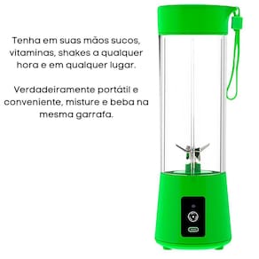 A recarga e a bateria desse liquidificador são feitas através de uma porta USB, podendo ser carregado em um carregador de celular, powerbank ou conectado ao seu Smartphone. Sua capacidade é de 380 ml e o tempo de recarga é de aproximadamente 3 horas. O tempo de trabalho é de 90 segundos e a carga completa permite o uso de 10 a 12 vezes.