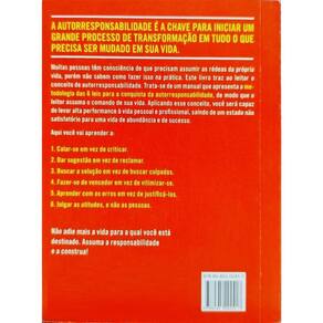 Sinopse Muitas pessoas têm consciência de que precisam assumir as rédeas da própria vida, porém não sabem como fazer isso na prática. Este livro traz ao leitor o conceito de autorresponsabilidade. Trata-se de um manual que apresenta a metodologia das 6 leis para a conquista da autorresponsabilidade, de modo que o leitor assuma o comando de sua vida. Aplicando esse conceito, você será capaz de levar alta performance à vida pessoal e profissional, saindo de um estado não satisfatório para uma vida de abundância e de sucesso. Aqui você vai aprender a: 1. Calar-se em vez de criticar. 2. Dar sugestão em vez de reclamar. 3. Buscar a solução em vez de buscar culpados. 4. Fazer-se de vencedor em vez de vitimizar-se. 5. Aprender com os erros em vez de justificá-los. 6. Julgar as atitudes, e não as pessoas. Não adie mais a vida para a qual você está destinado. Assuma a responsabilidade e a construa!